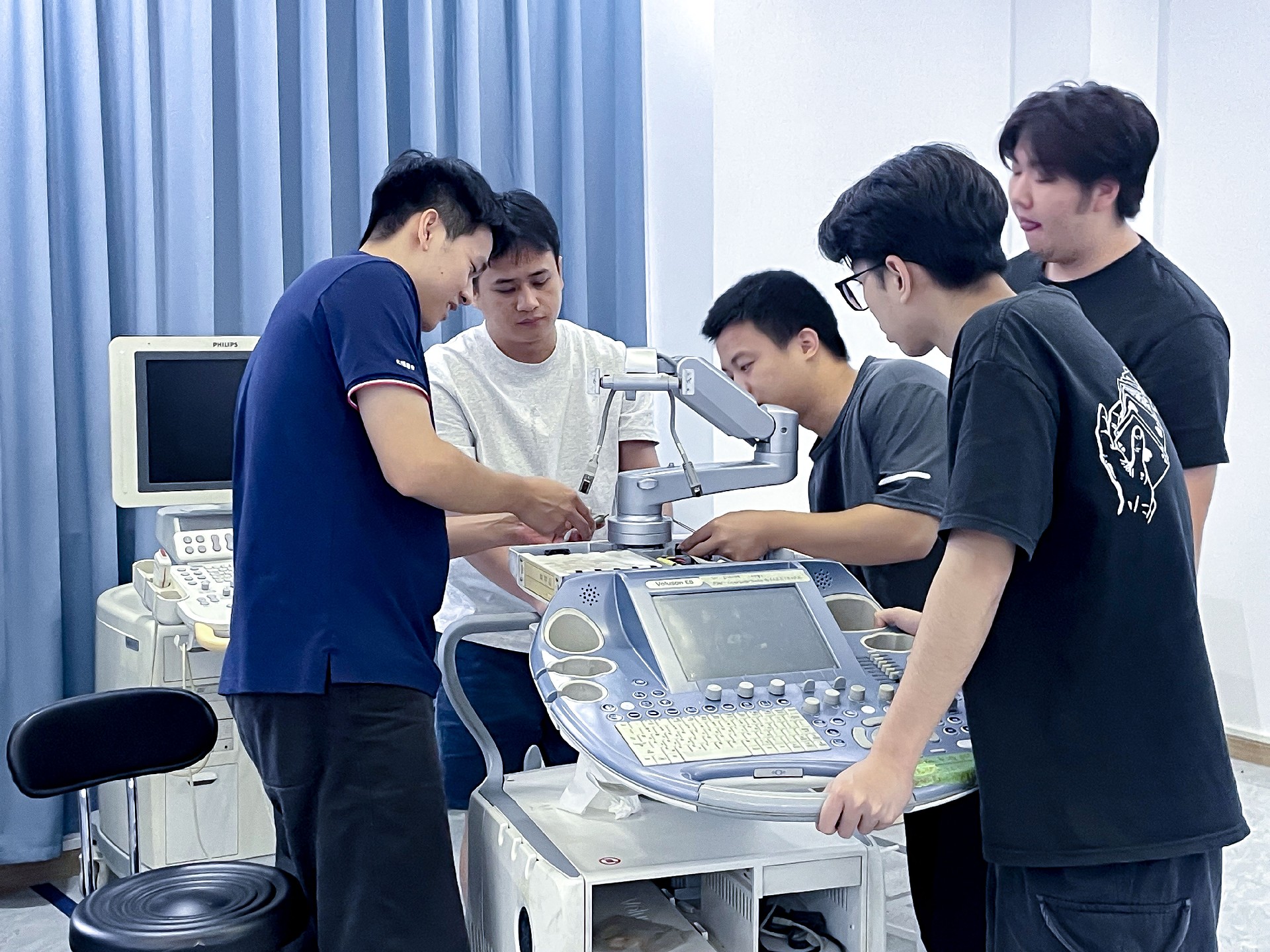 進(jìn)階培訓(xùn)的核心,是將理論轉(zhuǎn)化為“可落地的維修能力”。5天里,學(xué)員圍繞GE VOLUSON E系列、日立小二郎神、飛利浦EPIQ/CX系列等高端機(jī)型,展開(kāi)密集實(shí)操: