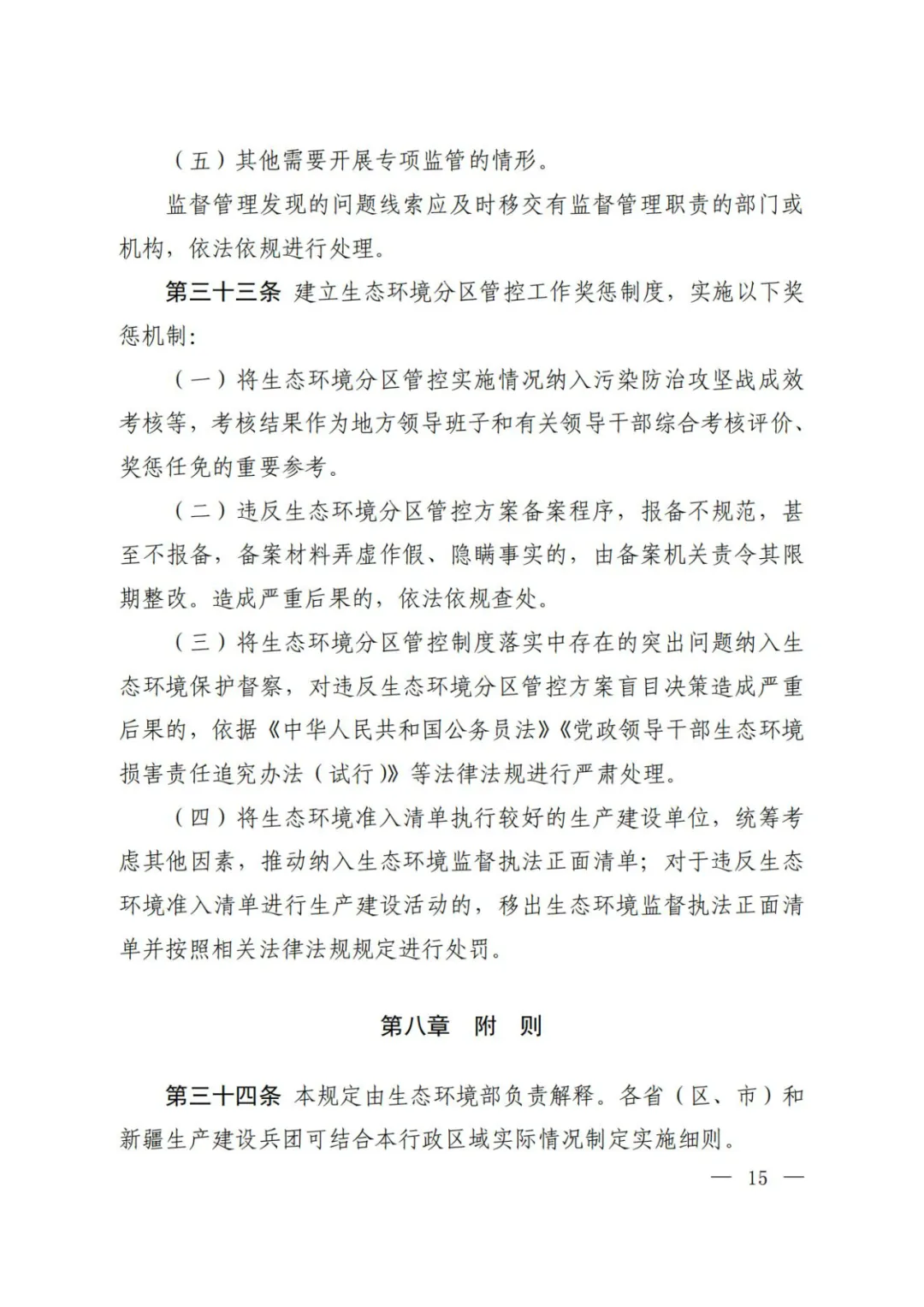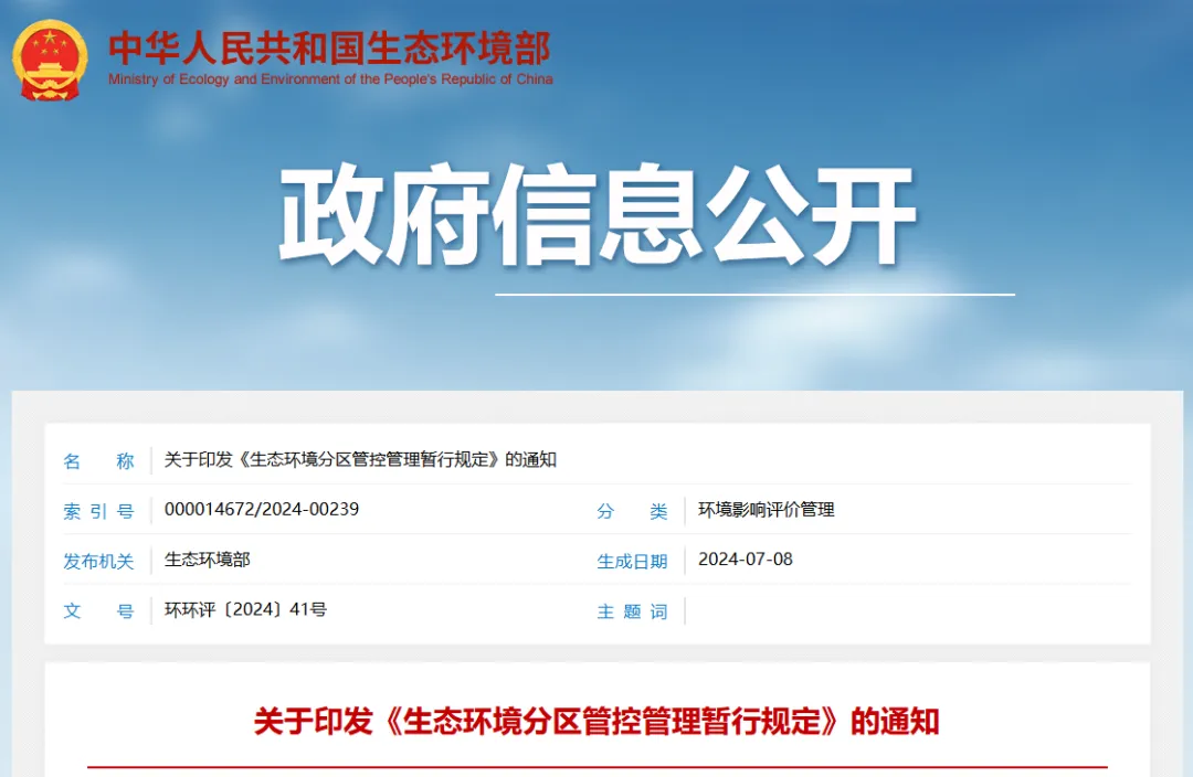 為貫徹落實《中共中央辦公廳 國務院辦公廳關于加強生態(tài)環(huán)境分區(qū)管控的意見》,完善全域覆蓋的生態(tài)環(huán)境分區(qū)管控體系,我部組織制定了《生態(tài)環(huán)境分區(qū)管控管理暫行規(guī)定》。現(xiàn)印發(fā)給你們,請遵照執(zhí)行。