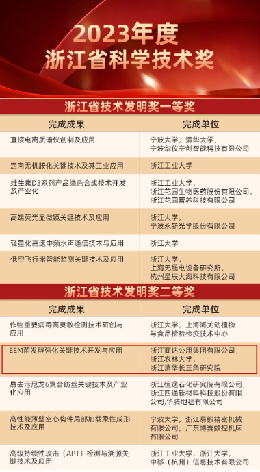 浙江商達(dá)公用集團(tuán)聯(lián)合浙江農(nóng)林大學(xué)、浙江清華長(zhǎng)三角研究院合作研發(fā)的“EEM菌發(fā)酵強(qiáng)化關(guān)鍵技術(shù)開(kāi)發(fā)與應(yīng)用”榮獲浙江省技術(shù)發(fā)明獎(jiǎng)二等獎(jiǎng)。