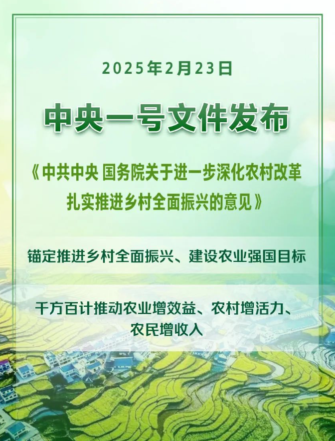2025年中央一號文件,吹響了鄉(xiāng)村全面振興的號角。讓我們共同期待,在政策的指引下,農(nóng)業(yè)基礎(chǔ)更加穩(wěn)固、農(nóng)村地區(qū)更加繁榮、農(nóng)民生活更加紅火的美好圖景早日實(shí)現(xiàn)!