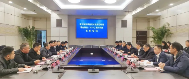簽約儀式上,長興縣人民政府代表與葛洲壩生態(tài)環(huán)保公司、葛洲壩生態(tài)環(huán)保公司所屬生態(tài)建設(shè)公司、浙江商達(dá)公用集團(tuán)有限公司、長興富美城鄉(xiāng)環(huán)境治理有限公司、中國公路工程咨詢集團(tuán)有限公司共同簽署長興南太湖流域泗安片區(qū)生態(tài)環(huán)境導(dǎo)向開發(fā)EOD項(xiàng)目投資合作協(xié)議。
