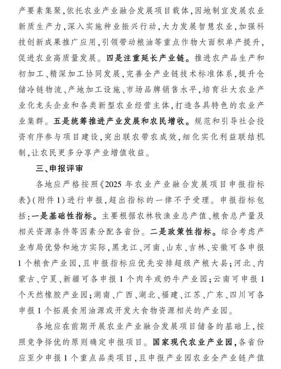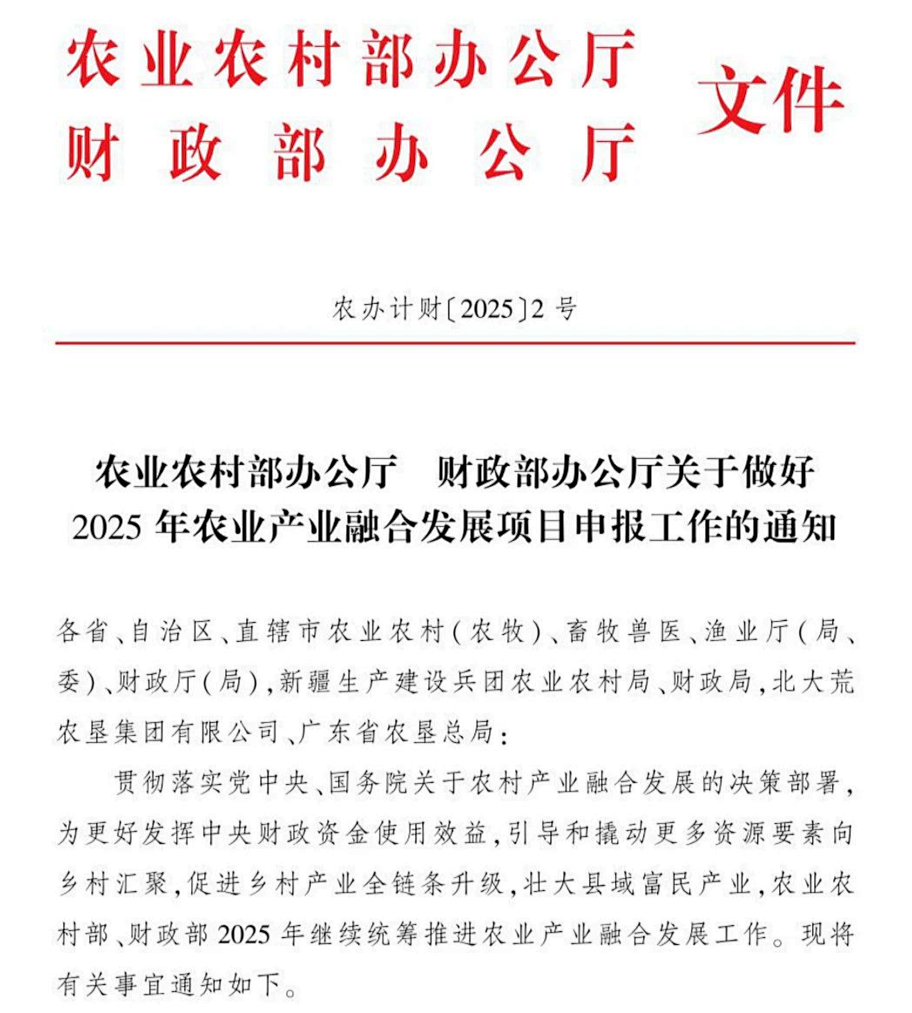 農(nóng)業(yè)農(nóng)村部2025年農(nóng)業(yè)產(chǎn)業(yè)融合發(fā)展項(xiàng)目申報工作已正式啟動,與2024年相比,今年的申報重點(diǎn)包括: