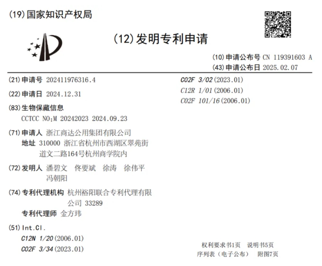 近日,浙江商達公用集團有限公司在微生物EEM菌種資源研發(fā)與應(yīng)用方面取得重要突破,其自主研發(fā)的不動桿菌CN-D1分離菌株及其菌體制劑,為循環(huán)水養(yǎng)殖和養(yǎng)殖尾水凈化提供了高效、環(huán)保的生物脫氮解決方案。相關(guān)成果成果《不動桿菌CN-D1分離菌株及其應(yīng)用》已通過國家知識產(chǎn)權(quán)局發(fā)明專利申請(申請?zhí)枺?02411976316.4),并于2025年4月28日授權(quán)(發(fā)文序號2025042800420800)。