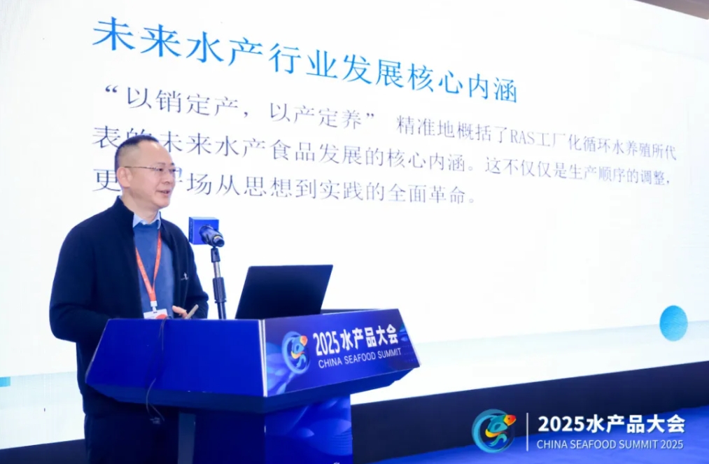 在主旨報告環(huán)節(jié),鄭展望教授以“商達(dá)RAS未來水產(chǎn)5.0創(chuàng)新發(fā)展實踐”為題,系統(tǒng)闡釋了商達(dá)在智慧漁業(yè)領(lǐng)域的突破性探索。他指出,面對全球食品產(chǎn)業(yè)迫切的升級需求,商達(dá)以生物技術(shù)(BT)、信息技術(shù)(IT)、食品技術(shù)(FT)深度融合為核心驅(qū)動力,構(gòu)建了兼具“標(biāo)準(zhǔn)化、智慧化、高效化、生態(tài)化、高值化”的未來水產(chǎn)養(yǎng)殖新模式。