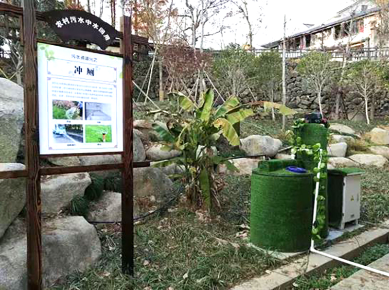 針對村內(nèi)農(nóng)家樂眾多的特點(diǎn),項目引入了現(xiàn)代發(fā)酵技術(shù)強(qiáng)化脫氮除磷效率,采用雙良商達(dá)標(biāo)準(zhǔn)化FBR發(fā)酵槽,并用物聯(lián)網(wǎng)技術(shù)實(shí)現(xiàn)了模式化智慧運(yùn)行,出水穩(wěn)定達(dá)到《城鎮(zhèn)污水處理廠污染物排放標(biāo)準(zhǔn)》(GB 18918-2002)一級A標(biāo)準(zhǔn),深度處理后雜用水用于沖廁和綠化等資源化利用。站點(diǎn)景觀設(shè)計,充分融合了山地的特征,草木沙石就地取材,采用“微園林”造景手法,探索建設(shè)村落景區(qū)污水處理4.0示范點(diǎn)。