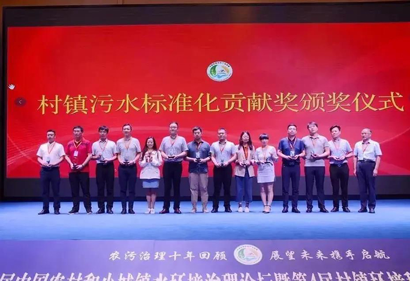 右五為雙良商達領獎代表在第10屆中國農(nóng)村和小城鎮(zhèn)水環(huán)境治理論壇暨第4屆村鎮(zhèn)環(huán)境科技產(chǎn)業(yè)聯(lián)盟論壇”上,雙良商達榮獲“村鎮(zhèn)污水標準化貢獻獎”。