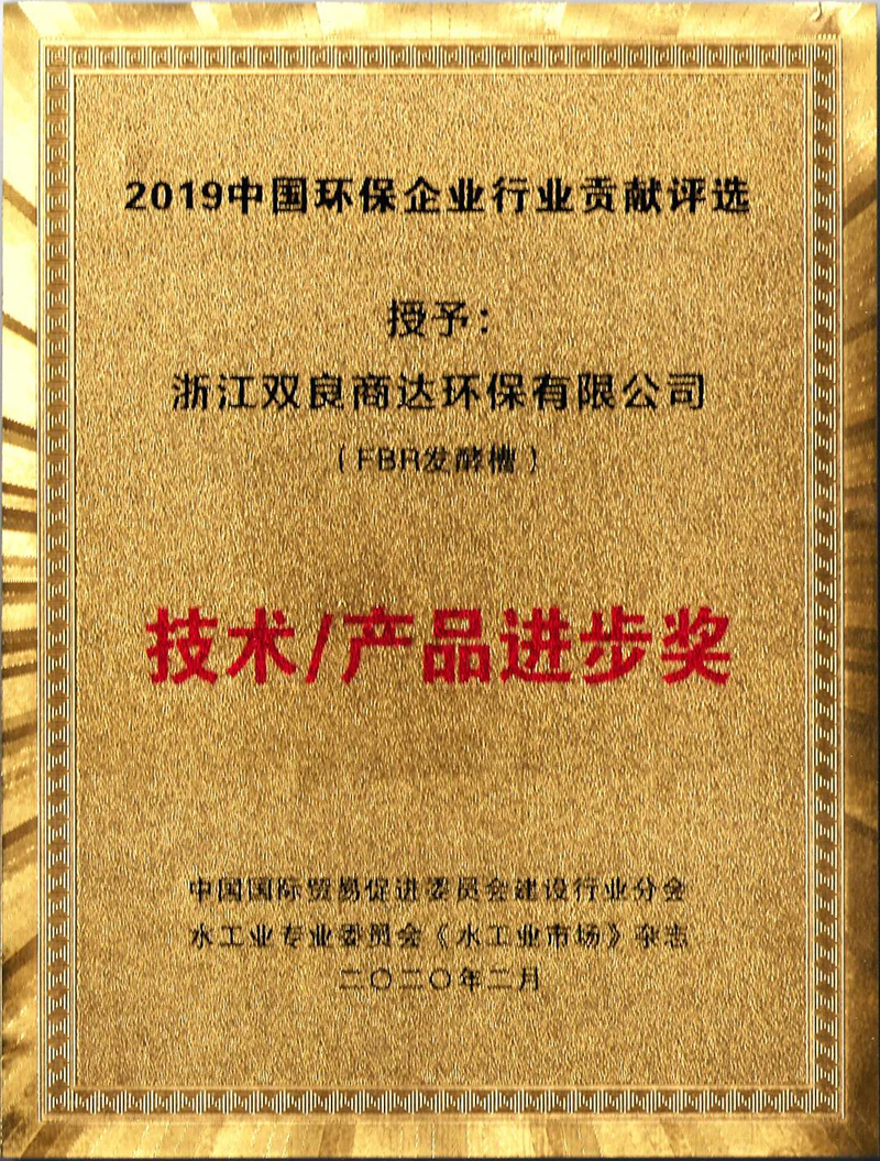 2020年1月,由《水工業(yè)市場》雜志發(fā)起的“2019中國環(huán)保企業(yè)行業(yè)貢獻評選”活動落下帷幕。雙良商達FBR發(fā)酵槽產(chǎn)品榮獲“2019中國環(huán)保企業(yè)行業(yè)貢獻評選——技術/產(chǎn)品進步獎”,這是FBR發(fā)酵槽技術產(chǎn)品連續(xù)5年獲得行業(yè)認可。