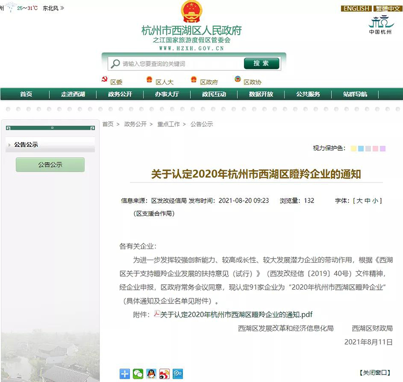 為進(jìn)一步發(fā)揮較強(qiáng)創(chuàng)新能力,較高成長性、較大發(fā)展?jié)摿Φ钠髽I(yè)帶動(dòng)作用,更好地樹立企業(yè)示范創(chuàng)新,近日,杭州西湖區(qū)發(fā)展改革和經(jīng)濟(jì)信息化局、西湖區(qū)財(cái)政局公布了2020年度杭州市西湖區(qū)“瞪羚企業(yè)”認(rèn)定榜單,雙良商達(dá)入選該榜單。