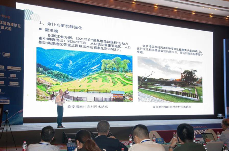 鄭展望教授以臨安指南村為例,分享了雙良商達5.0FBR發(fā)酵槽在農(nóng)村污水資源化利用方面的探索實踐,獲得與會專家的肯定。