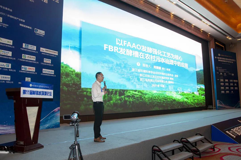 圖為鄭展望教授作主題報告作為本次論壇的協(xié)辦單位,浙江雙良商達環(huán)保有限公司董事長、浙江省環(huán)境科學(xué)學(xué)會農(nóng)村環(huán)境專業(yè)委員會主任、浙江農(nóng)林大學(xué)農(nóng)村環(huán)境研究所所長鄭展望教授應(yīng)邀出席了論壇,并以《以FAAO發(fā)酵強化工藝為核心 FBR發(fā)酵槽在農(nóng)村污水治理中的應(yīng)用》為主題作了發(fā)言報告,著重闡述了FBR發(fā)酵槽在提升農(nóng)村污水達標率方面的探索實踐。下面為報告精彩分享: