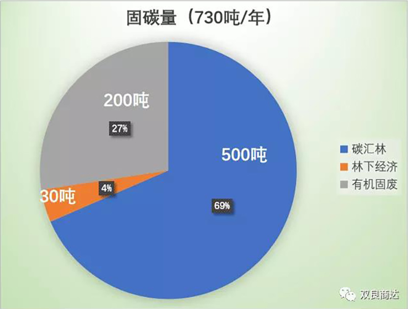 指南村項目碳排放量為181.7噸/年,碳匯量730噸/年,實現(xiàn)碳中和,碳盈余548.3噸/年。