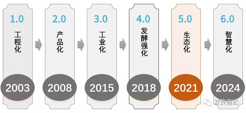 農村污水治理設備經(jīng)歷了多個發(fā)展階段。從1.0的集成化,2.0的產品化,到4.0發(fā)酵強化,5.0生態(tài)化。以及將來6.0的智慧化。