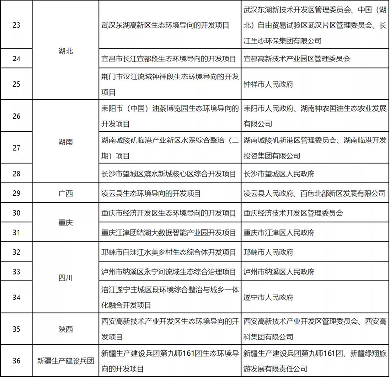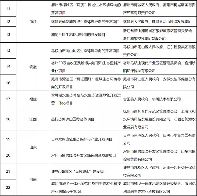 附:2021年生態(tài)環(huán)境導(dǎo)向的開發(fā)(EOD)模式試點項目名單