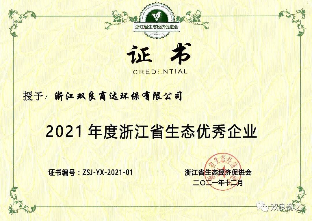 雙良商達(dá)獲“浙江省生態(tài)優(yōu)秀企業(yè)”榮譽(yù)