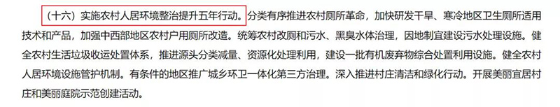 《方案》中,對(duì)未來5年的農(nóng)村人居環(huán)境整治工作做出了詳細(xì)安排,其中包括扎實(shí)推進(jìn)農(nóng)村廁所革命、加快推進(jìn)農(nóng)村生活污水治理、全面提升農(nóng)村生活垃圾治理水平、推動(dòng)村容村貌整體提升等多項(xiàng)內(nèi)容。按照《方案》目標(biāo),到2025年,農(nóng)村人居環(huán)境要取得顯著改善,生態(tài)宜居美麗鄉(xiāng)村建設(shè)要取得新進(jìn)步。1、農(nóng)村衛(wèi)生廁所普及率穩(wěn)步提高,廁所糞污基本得到有效處理;