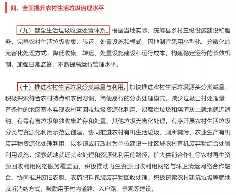 3、農(nóng)村生活垃圾無害化處理水平明顯提升,有條件的村莊實(shí)現(xiàn)生活垃圾分類、源頭減量;