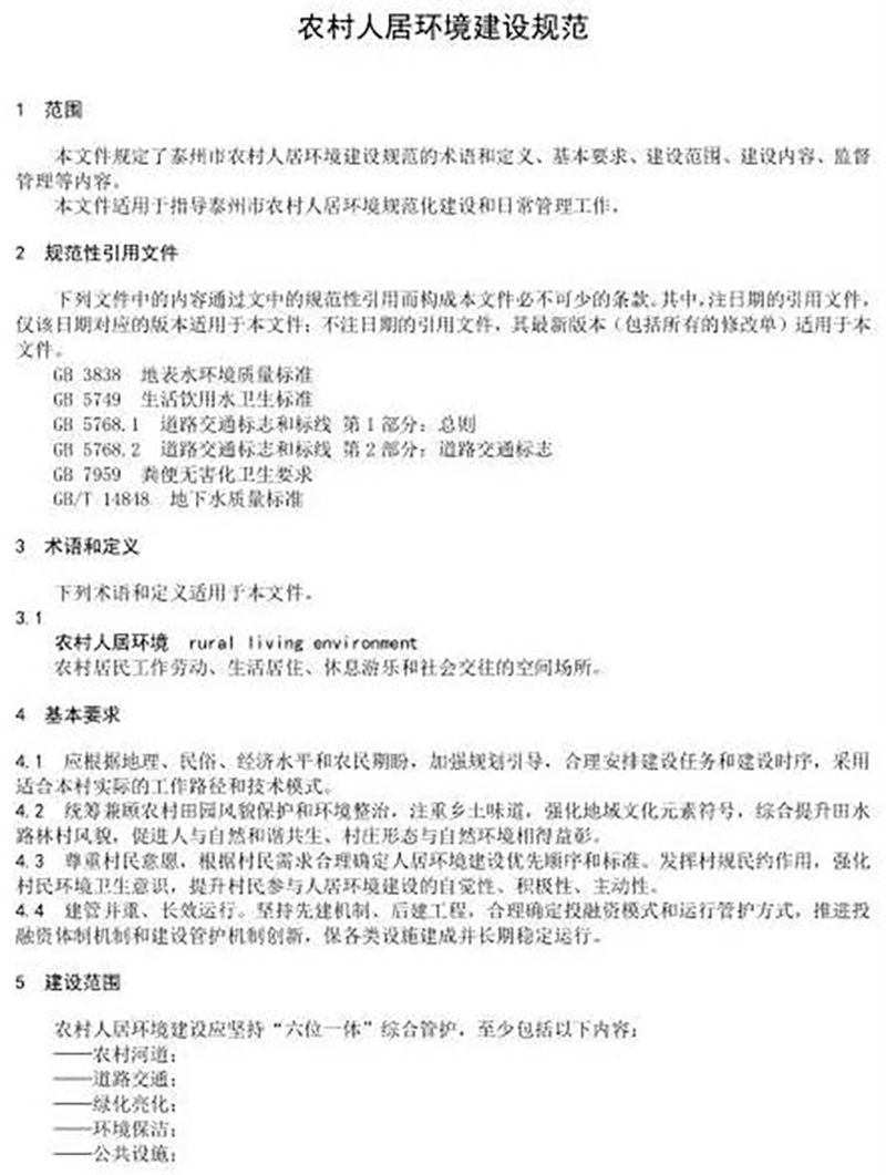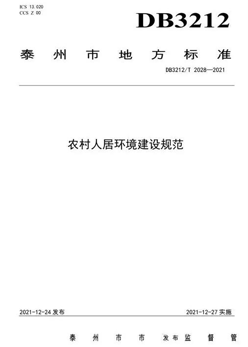 近日,江蘇省泰州市市場監(jiān)督管理局發(fā)布泰州市地方標(biāo)準(zhǔn)《農(nóng)村人居環(huán)境建設(shè)規(guī)范》(DB3212/T2028-2021),該規(guī)范由泰州市農(nóng)業(yè)農(nóng)村局、泰州市標(biāo)準(zhǔn)化院、泰州醫(yī)藥高新區(qū)(高港區(qū))農(nóng)業(yè)農(nóng)村局共同起草,是江蘇省第一個(gè)農(nóng)村人居環(huán)境建設(shè)方面的地方性標(biāo)準(zhǔn),有利于指導(dǎo)農(nóng)村人居環(huán)境規(guī)范化建設(shè)和日常管理工作。