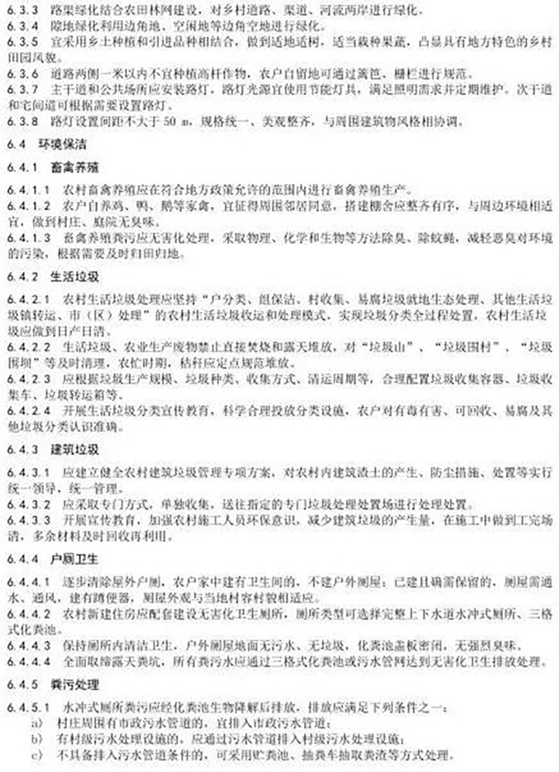 明確建設(shè)要求。《農(nóng)村人居環(huán)境建設(shè)規(guī)范》提出,推進(jìn)農(nóng)村人居環(huán)境建設(shè),要堅(jiān)持四項(xiàng)基本要求。一要加強(qiáng)規(guī)劃引導(dǎo)。根據(jù)地理、民俗、經(jīng)濟(jì)水平和農(nóng)民期盼,合理安排建設(shè)任務(wù)和建設(shè)時(shí)序。二要注重鄉(xiāng)土味道。統(tǒng)籌兼顧農(nóng)村田園風(fēng)貌保護(hù)和環(huán)境整治,強(qiáng)化地域文化元素,綜合提升田水路林村風(fēng)貌,促進(jìn)人與自然和諧共生、村莊形態(tài)與自然環(huán)境相得益彰。三要尊重村民意愿。根據(jù)村民需求合理確定人居環(huán)境建設(shè)優(yōu)先順序和標(biāo)準(zhǔn),發(fā)揮村規(guī)民約作用,提升村民參與人居環(huán)境建設(shè)的自覺性、積極性、主動性。四是堅(jiān)持建管并重。先建機(jī)制、后建工程,合理確定投融資模式和運(yùn)行管護(hù)方式,推進(jìn)投融資體制機(jī)制和建設(shè)管護(hù)機(jī)制創(chuàng)新,保各類設(shè)施建成并長期穩(wěn)定運(yùn)行。