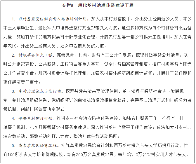 ——鄉(xiāng)村治理能力進一步增強。黨組織領(lǐng)導(dǎo)的農(nóng)村基層組織建設(shè)明顯加強,鄉(xiāng)村治理體系更加健全,鄉(xiāng)風(fēng)文明程度有較大提升,農(nóng)民精神文化生活不斷豐富,農(nóng)村發(fā)展安全保障更加有力。