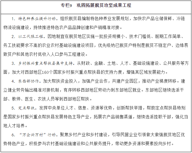 深入推進東西部協(xié)作和社會力量幫扶。堅持和完善東西部協(xié)作機制,加強產(chǎn)業(yè)合作、資源互補、勞務(wù)協(xié)作、人才交流,推進產(chǎn)業(yè)梯度轉(zhuǎn)移,鼓勵東西部共建產(chǎn)業(yè)園區(qū)。健全中央黨政機關(guān)和國有企事業(yè)單位等定點幫扶機制,對東西部協(xié)作和定點幫扶成效進行考核評價。加大社會力量參與力度,扎實推進“萬企興萬村”行動。