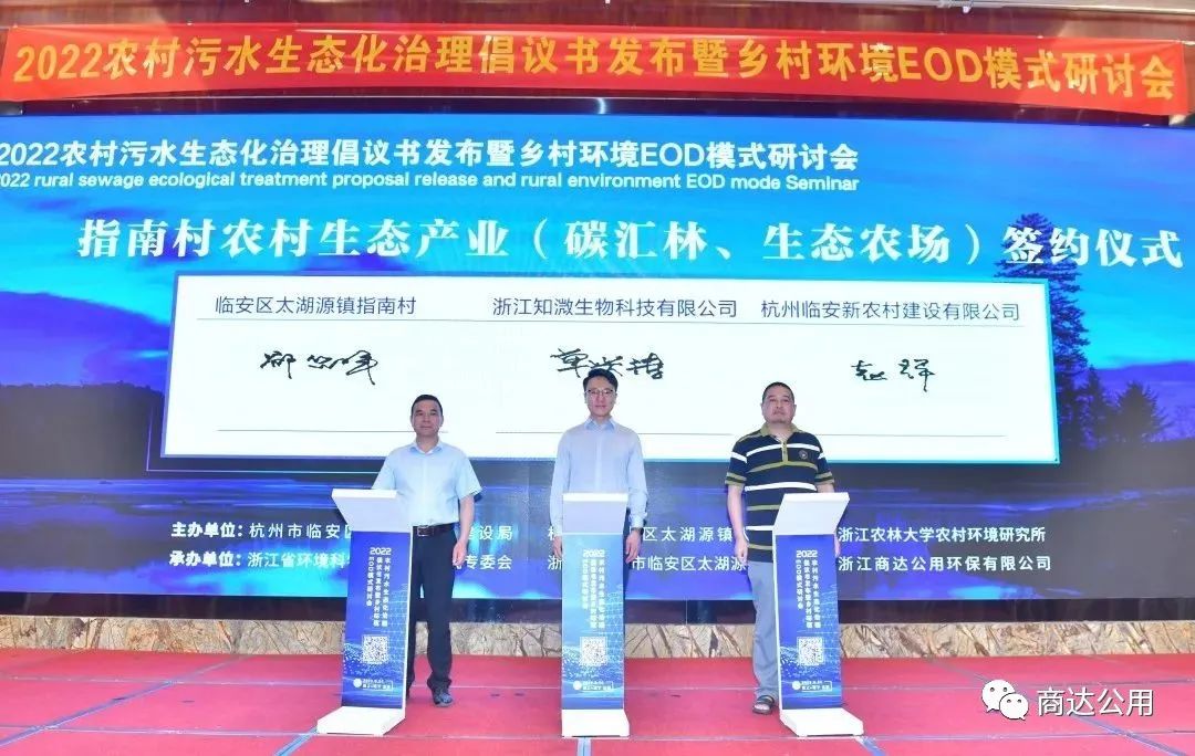 2022年6月,農(nóng)村污水生態(tài)化治理倡議書發(fā)布暨鄉(xiāng)村環(huán)境EOD模式研討會在臨安開幕。浙江商達(dá)公用環(huán)保有限公司聯(lián)合三峽集團(tuán)、葛洲壩集團(tuán)、北控水務(wù)集團(tuán)、中建三局、富春紫光環(huán)保、杭州水務(wù)、省建投環(huán)保、華東勘測設(shè)計(jì)院、華設(shè)集團(tuán)等行業(yè)單位共同發(fā)布了《2022農(nóng)村污水生態(tài)化治理倡議書》,更好地推動農(nóng)村污水生態(tài)化治理。