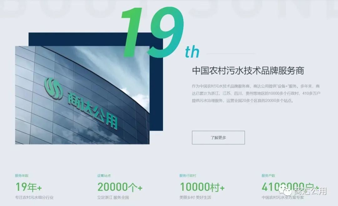 商達(dá)公用成立于2000年,深耕于農(nóng)村污水細(xì)分行業(yè)19年。作為中國農(nóng)村污水技術(shù)品牌服務(wù)商,商達(dá)公用提供 “設(shè)備+全方案”服務(wù)。19年來,已累計(jì)為全國410萬戶1200萬人提供污水治理服務(wù),運(yùn)營全國20個(gè)區(qū)縣的20000個(gè)站點(diǎn)。作為國家高新技術(shù)企業(yè),商達(dá)公用自2000年成立以來,榮獲省市各項(xiàng)榮譽(yù)。2019年。在E2O的村鎮(zhèn)污水處理年度盤點(diǎn)中,商達(dá)公用農(nóng)村污水處理總規(guī)模、設(shè)備供應(yīng)總規(guī)模處于全國第一。2020年,商達(dá)公用被浙江省人民政府辦公廳評(píng)為 “隱形冠軍”培育企業(yè),2021年,商達(dá)公用被浙江省人民政府辦公廳評(píng)為 “專精特新”企業(yè)。