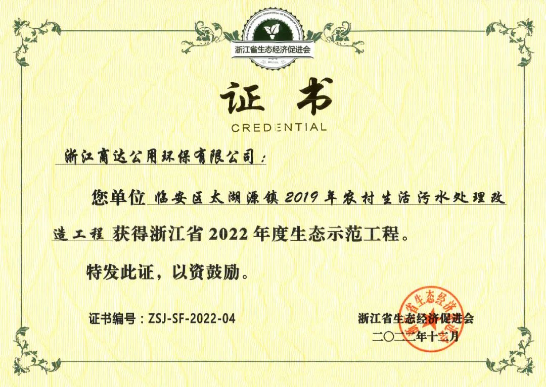 近日,浙江省生態(tài)經(jīng)濟促進會開展了浙江省2022年度生態(tài)示范工程評選活動。獎項均由浙江省生態(tài)經(jīng)濟促進會發(fā)起,旨在進一步推動浙江省生態(tài)經(jīng)濟產(chǎn)業(yè)的發(fā)展,增強企業(yè)的綜合競爭力,表彰在浙江省生態(tài)經(jīng)濟產(chǎn)業(yè)發(fā)展中引領(lǐng)示范的會員單位。在此次評選中,商達公用臨安區(qū)農(nóng)污提標及第三方運維項目獲評“浙江省2022年度生態(tài)示范工程”。