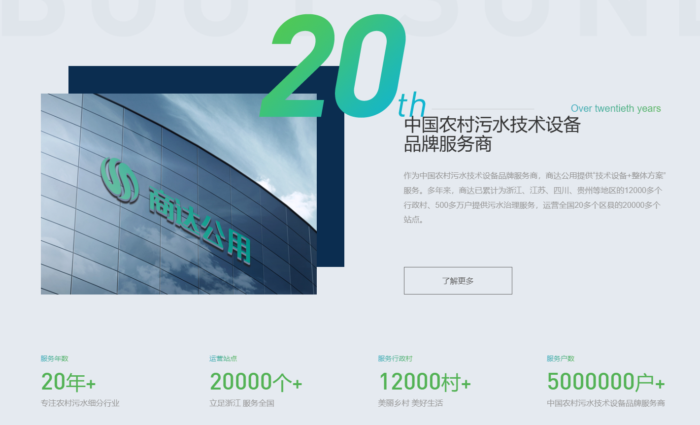 作為山東公用集團在鄉(xiāng)村環(huán)境領(lǐng)域的投資發(fā)展平臺,商達公用定位為中國農(nóng)村污水技術(shù)設備品牌服務商。20年來,已累計為全國12000個村500萬戶提供污水治理服務,運營全國20個區(qū)縣的20000個站點。在E2O的村鎮(zhèn)污水處理年度盤點中,商達公用農(nóng)村污水處理總規(guī)模、設備供應總規(guī)模排名第一。近兩年,商達也先后被評為農(nóng)村污水 “隱形冠軍”培育企業(yè)、“瞪羚企業(yè)”、浙江省“專精特新”企業(yè)、浙江省AAA級“守合同重信用”企業(yè)稱號等。