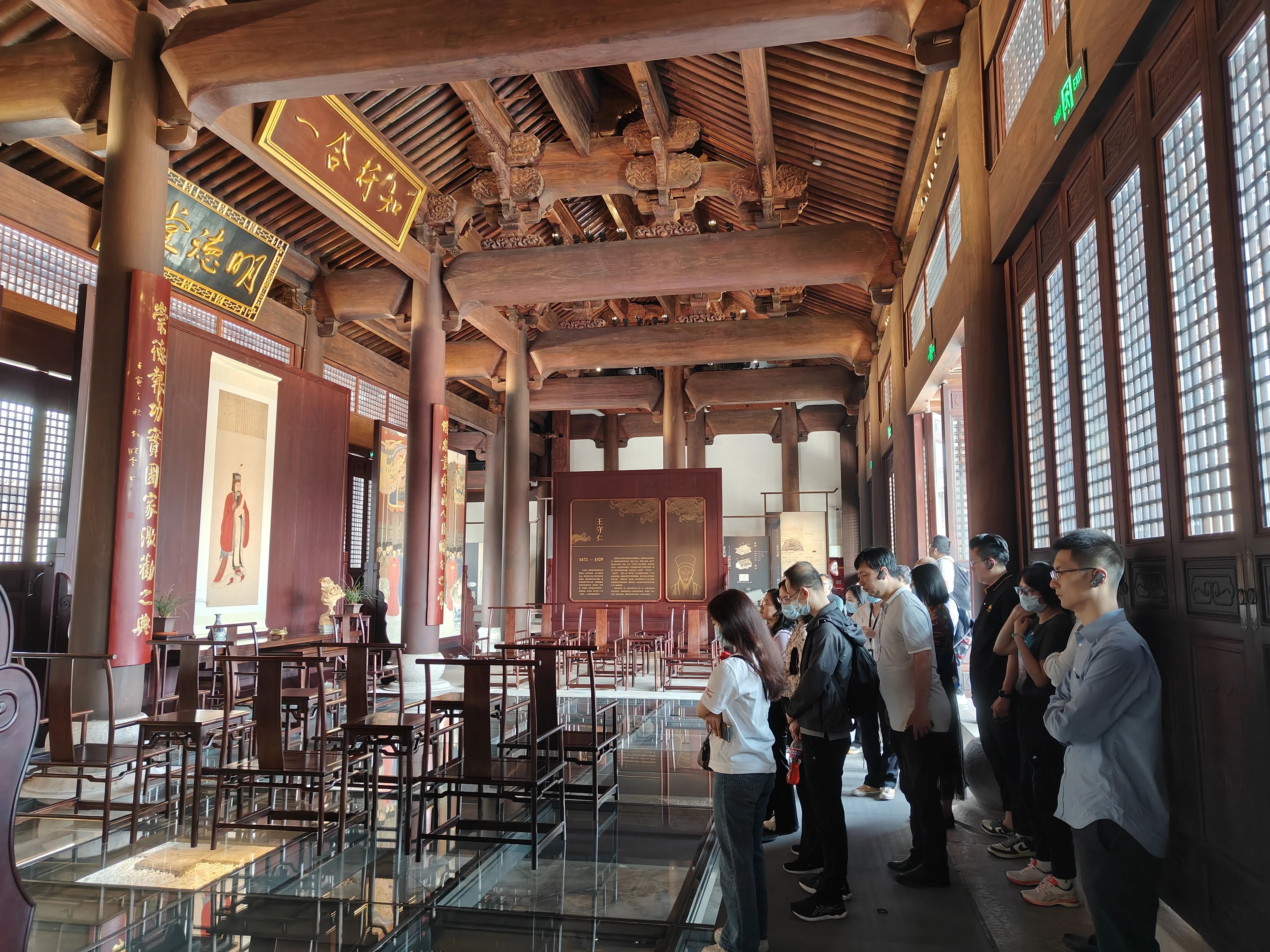 5月19日下午,游學(xué)培訓(xùn)第一站,陽光班20余人來到集故居遺址、古建復(fù)原、紀(jì)念館三位?體的陽明故里進(jìn)行參觀學(xué)習(xí),在講解員的帶領(lǐng)下,學(xué)員們深入了解了陽明先生的生平、講學(xué)歷程以及精神思想。