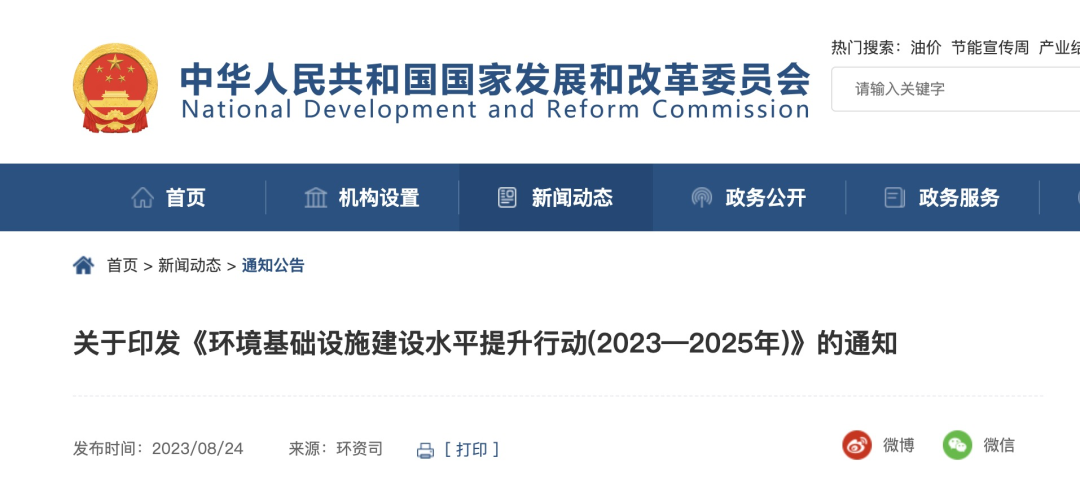 國(guó)家發(fā)展改革委等部門關(guān)于印發(fā)《環(huán)境基礎(chǔ)設(shè)施建設(shè)水平提升行動(dòng)(2023—2025年)》的通知