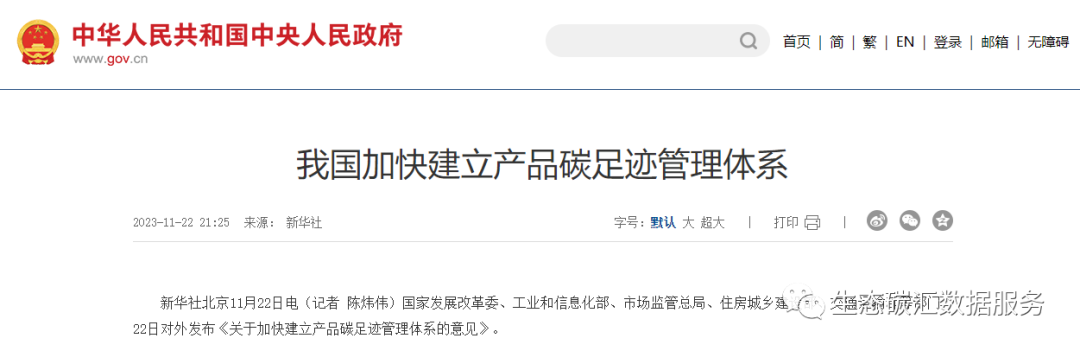 2023年11月22日,國(guó)家發(fā)展改革委、工業(yè)和信息化部、市場(chǎng)監(jiān)管總局、住房城鄉(xiāng)建設(shè)部、交通運(yùn)輸部等部門(mén)對(duì)外發(fā)布了《關(guān)于加快建立產(chǎn)品碳足跡管理體系的意見(jiàn)》(以下簡(jiǎn)稱(chēng)《意見(jiàn)》),《意見(jiàn)》對(duì)產(chǎn)品碳足跡管理各項(xiàng)重點(diǎn)任務(wù)作出系統(tǒng)部署,提出制定產(chǎn)品碳足跡核算規(guī)則標(biāo)準(zhǔn)、加強(qiáng)碳足跡背景數(shù)據(jù)庫(kù)建設(shè)、建立產(chǎn)品碳標(biāo)識(shí)認(rèn)證制度、豐富產(chǎn)品碳足跡應(yīng)用場(chǎng)景、推動(dòng)碳足跡國(guó)際銜接與互認(rèn)等工作舉措,并明確了職責(zé)分工和保障措施等。