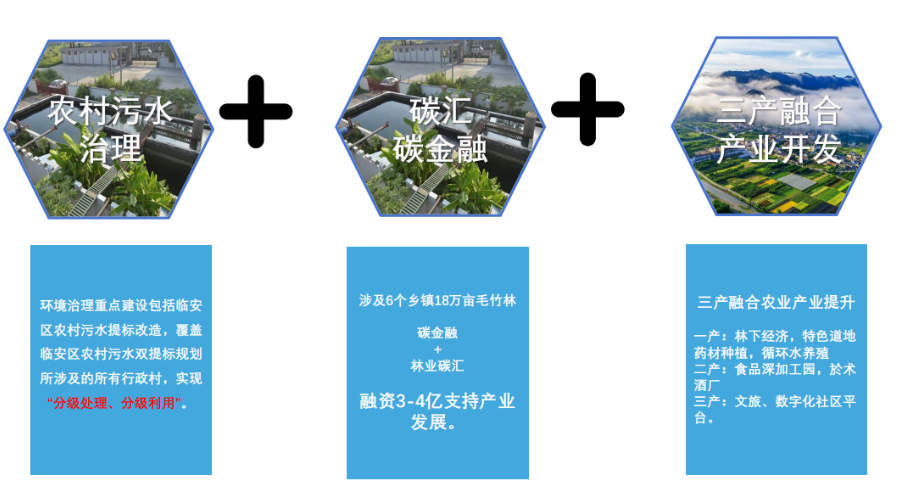 項目以生態(tài)環(huán)境為導(dǎo)向帶動產(chǎn)業(yè)發(fā)展的理念,以“三產(chǎn)相融”農(nóng)村產(chǎn)業(yè)高質(zhì)量發(fā)展為載體,通過“分級處理、分級利用”實現(xiàn)污水資源化利用,促進林業(yè)碳匯、生態(tài)農(nóng)業(yè)和農(nóng)旅康養(yǎng)等鄉(xiāng)村產(chǎn)業(yè)發(fā)展,助力臨安區(qū)打造高標準鄉(xiāng)村振興實踐案例,高質(zhì)量共同富裕示范樣板。
