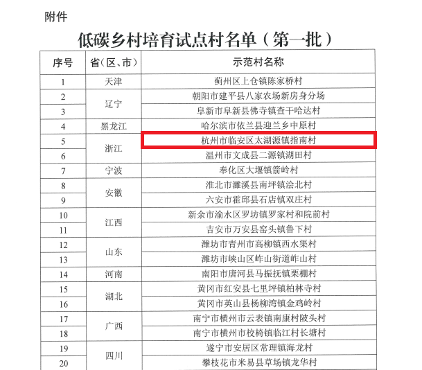 近日,農業(yè)農村部農業(yè)生態(tài)與資源保護總站公布了第一批低碳鄉(xiāng)培育試點村名單,臨安區(qū)太湖源鎮(zhèn)指南村成功入選。